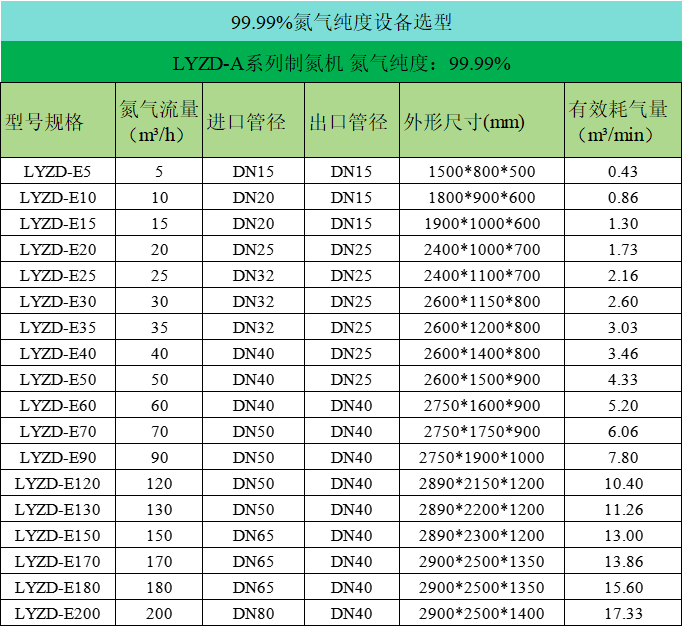 氮氣純度:95%~99.999%