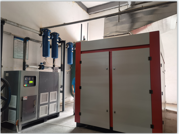 某紡織公司空壓機(jī)節(jié)能項(xiàng)目:因公司生產(chǎn)需要,增加一套185kw大型兩級壓縮永磁變頻螺桿式空壓機(jī)替代多臺中小空壓機(jī),增加了機(jī)房的空間環(huán)境,對機(jī)器的運(yùn)行、散熱、維修維護(hù)的方便性都有很大的效率,提高節(jié)能效果,為企業(yè)節(jié)約電費(fèi)。