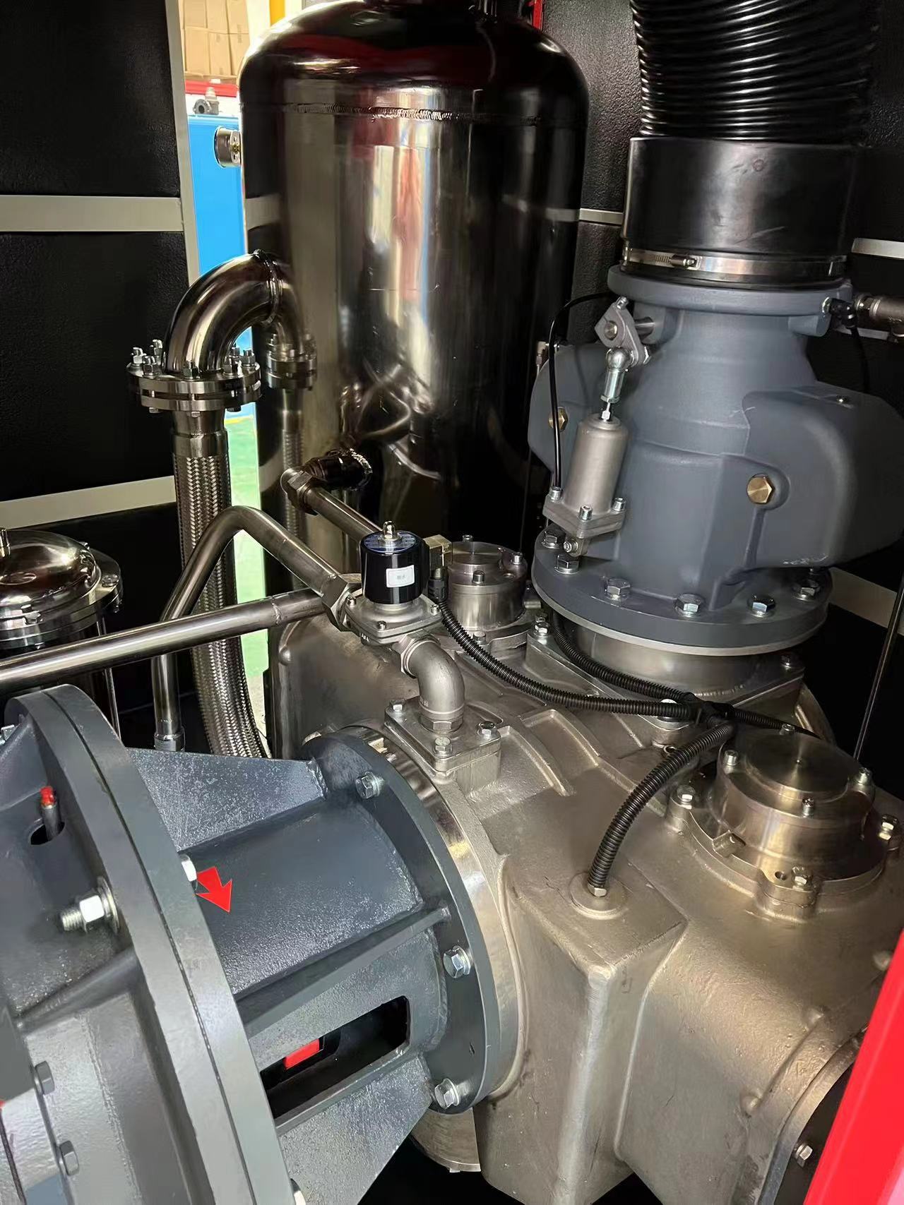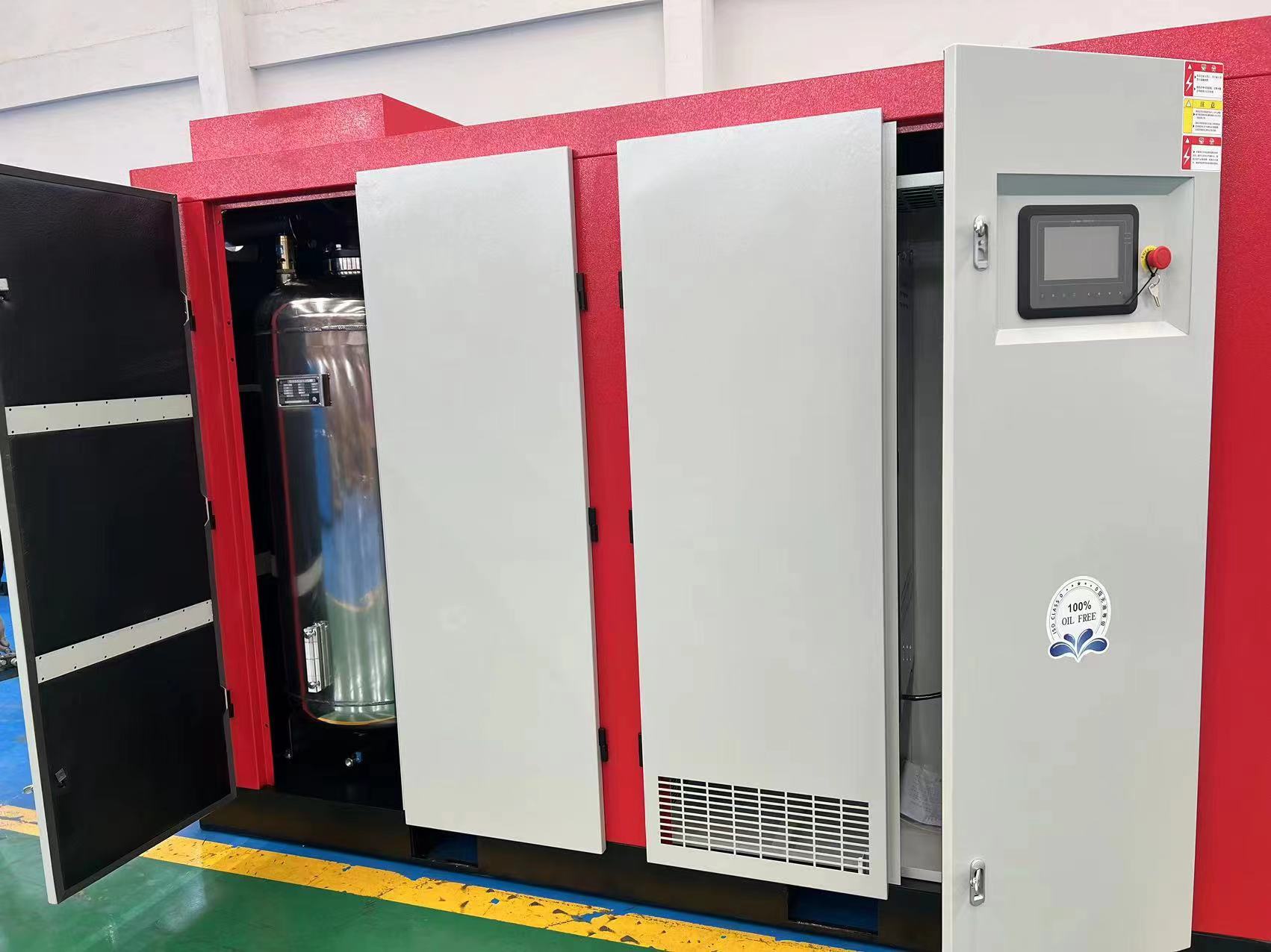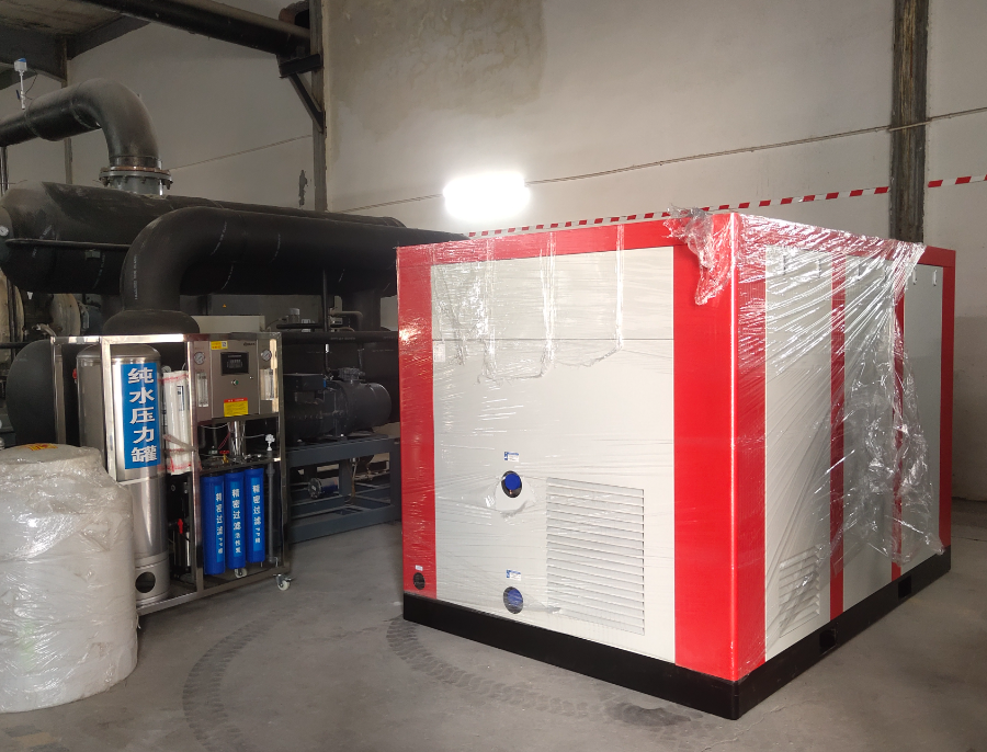 某紡織公司空壓機節能項目:因公司生產需要,增加一套200kw水潤滑永磁變頻螺桿式空壓機,增加了機房的空間環境,對機器的運行、散熱、維修維護的方便性都有很大的效率,提高節能效果。